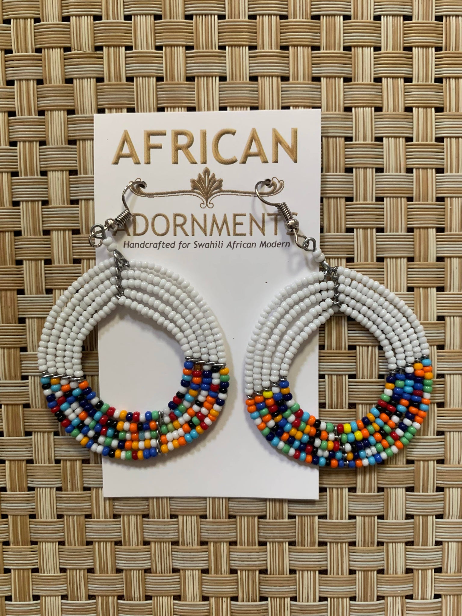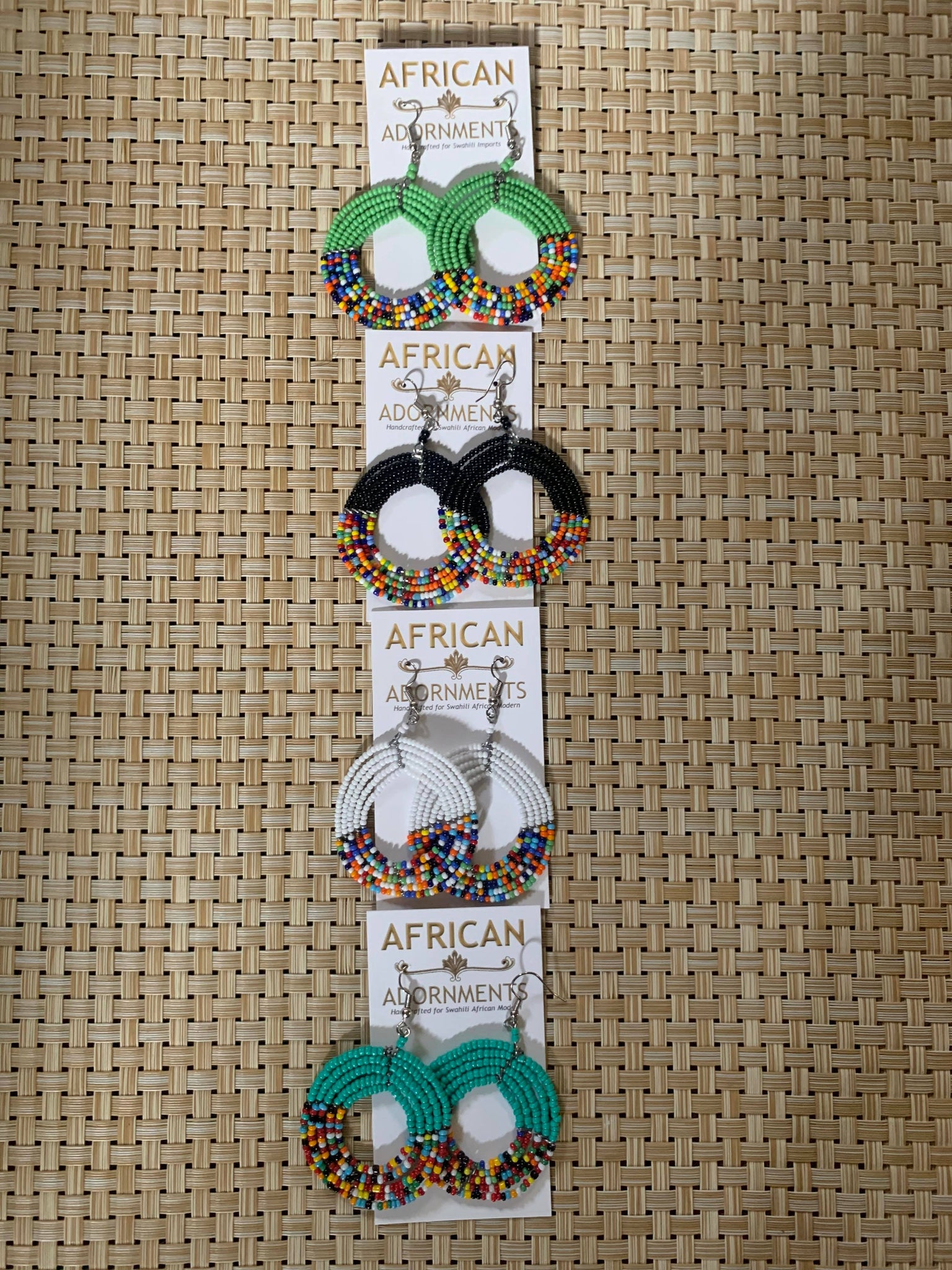 These beautiful celebration earrings are made by the Maasai tribe. They are fair trade jewelry that supports small families and cottage industries in Africa. They come in assorted colors.